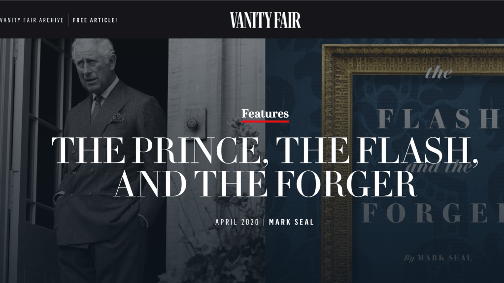 Tony’s work from James Stunt’s Royal caper in this full length feature article in Vanity Fair. https://archive.vanityfair.com/article/2020/4/the-prince-the-flash-and-the-forger