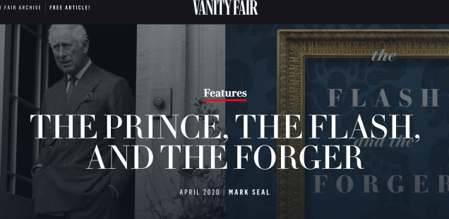 Tony’s work from James Stunt’s Royal caper in this full length feature article in Vanity Fair. https://archive.vanityfair.com/article/2020/4/the-prince-the-flash-and-the-forger