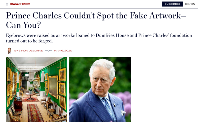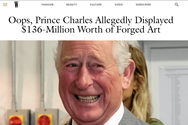 Oops, Prince Charles Allegedly Displayed $136-Million Worth of Forged Art. https://www.wmagazine.com/story/prince-charles-forged-art-james-stunt/